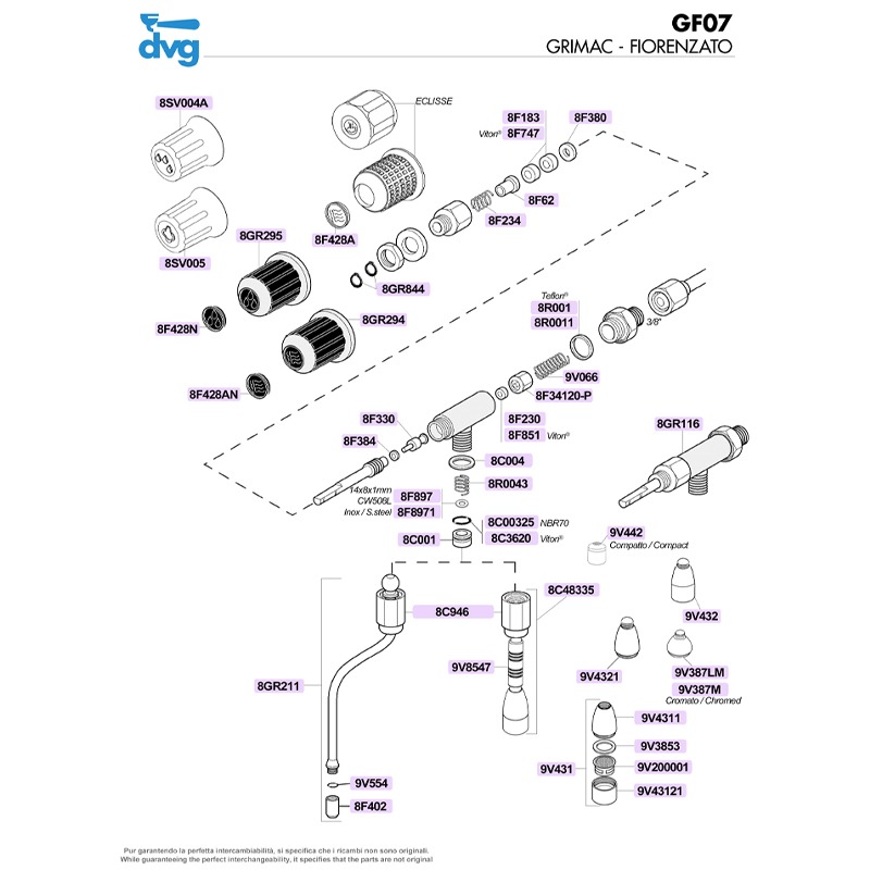 Material: EPDM. Hardness: 70 SHORE. Camme manual group Wega, Bfc, Futurmat Ariete, VBM. Pavoni. Steam/water tap VBM Mercury. Faema E61/64. Viton® 8F747